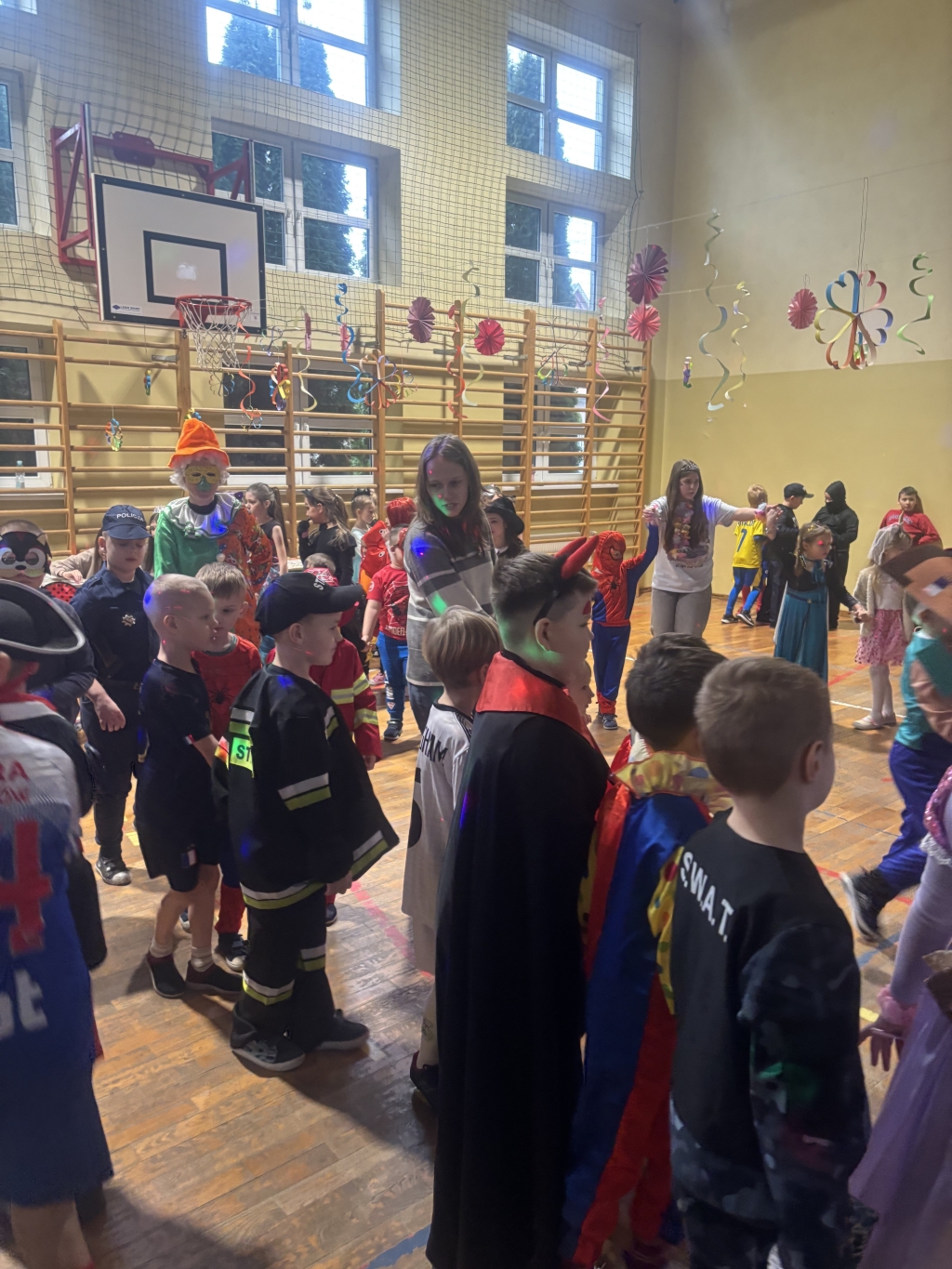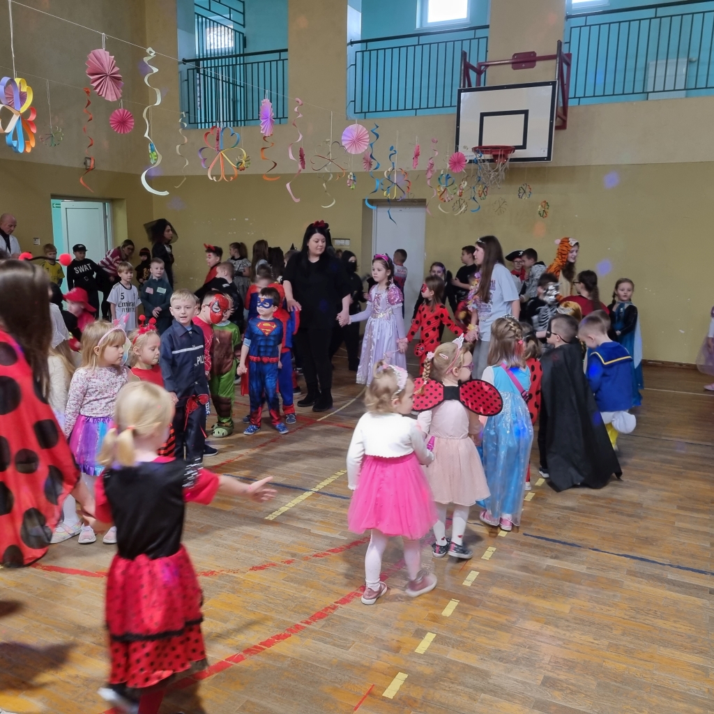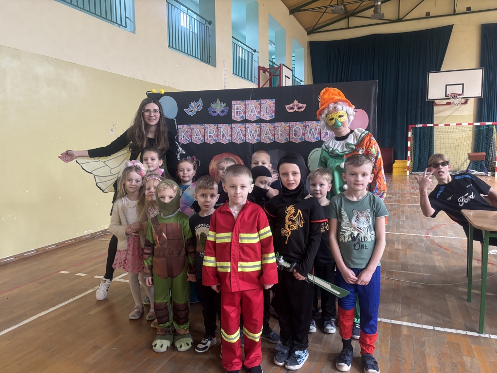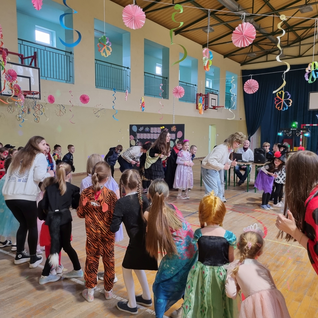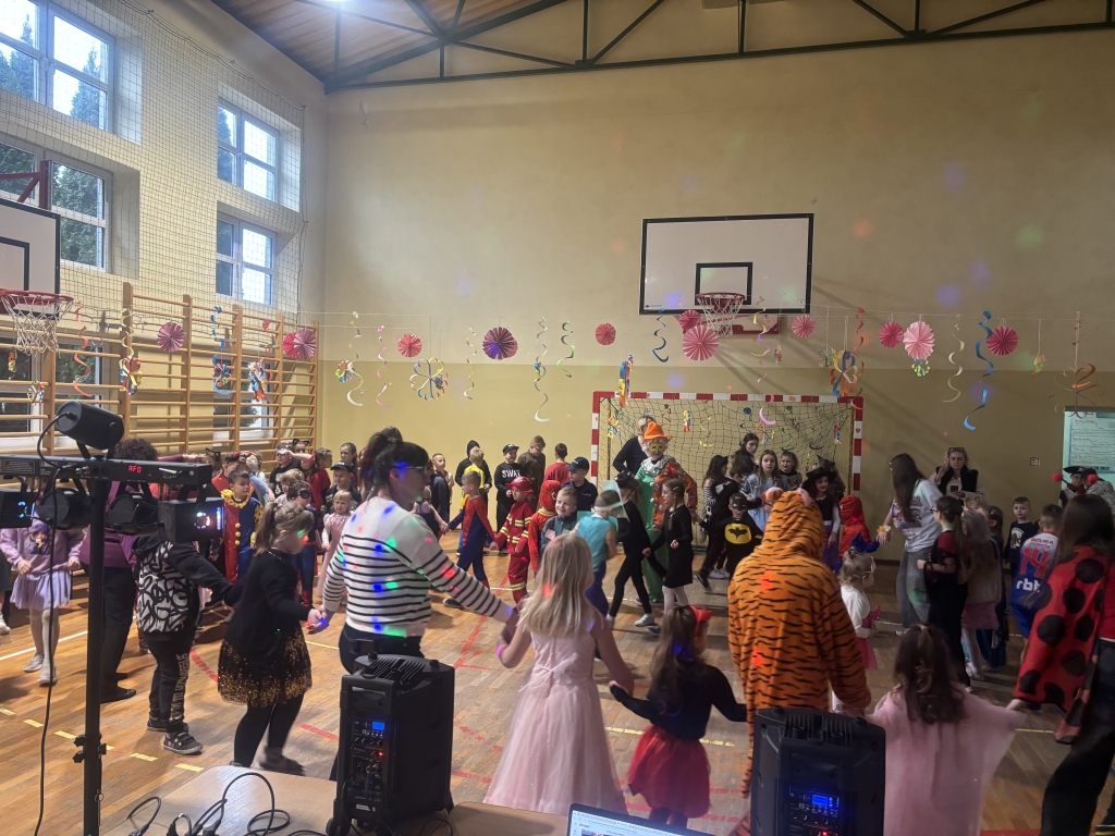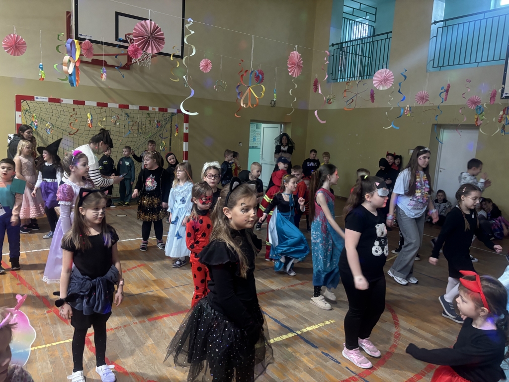 Karnawał to czas radości i wspólnych zabaw. Nie od dziś wiadomo, że dzieci uwielbiają tańczyć, dlatego też zabawa karnawałowa jest jednym z najbardziej wyczekiwanych i przyjemnych wydarzeń w życiu szkoły. W dniu 13.02.2025 r. nasz wyjątkowy bal odbył się w pięknie udekorowanej sali gimnastycznej. W naszej szkole tego dnia zamiast uczniów klas 0-III, pojawili się policjanci, księżniczki, wróżki, ninja, piłkarze, zwierzęta, piraci i wiele, wiele innych postaci. Przy dźwiękach muzyki dzieci bawiły się świetnie, biorąc udział we wspólnych zabawach oraz korzystając z wszystkich przygotowanych atrakcji. Patrząc na te radosne, roześmiane buzie chciałoby się krzyknąć „Niech żyje bal!”.