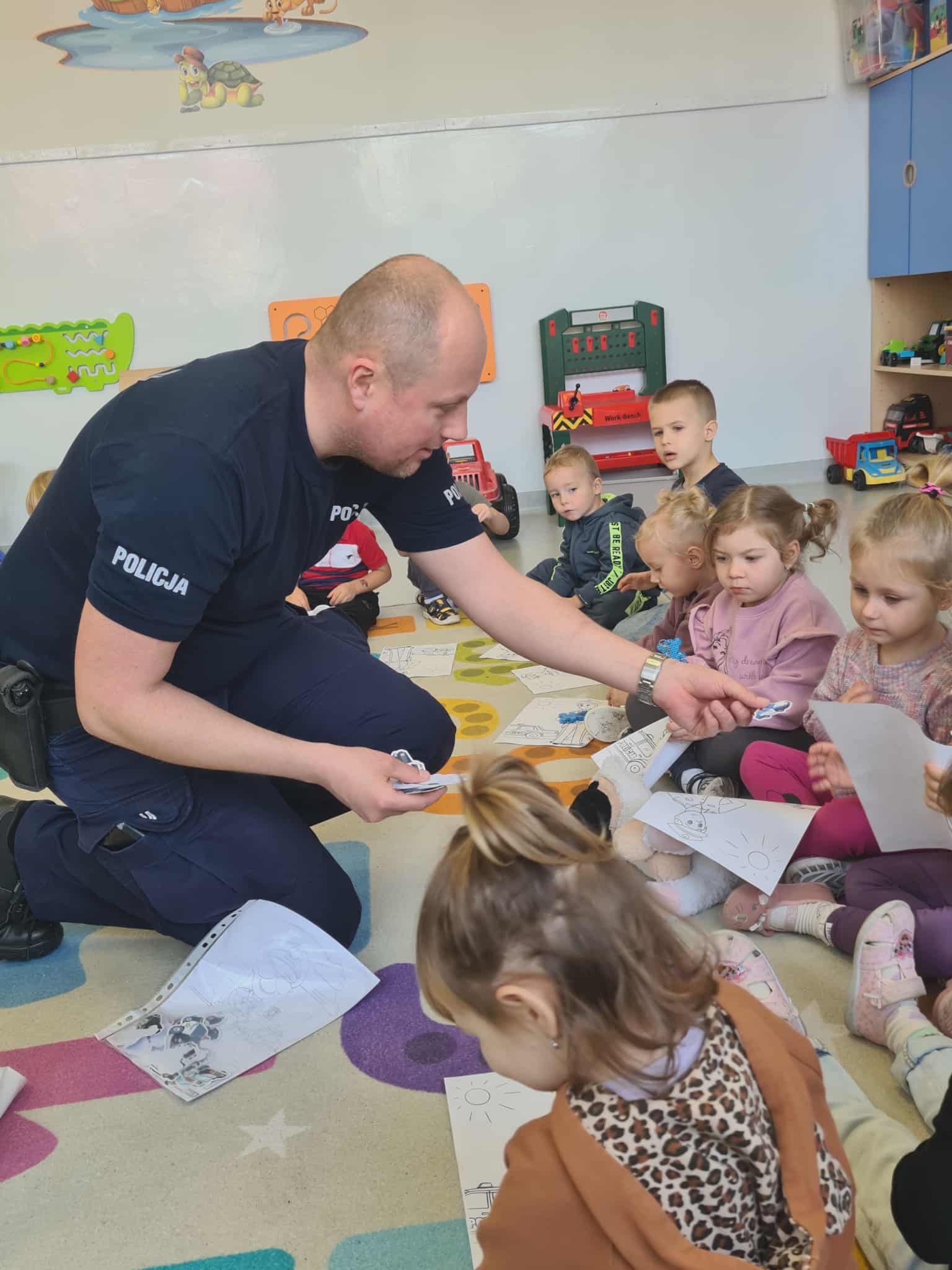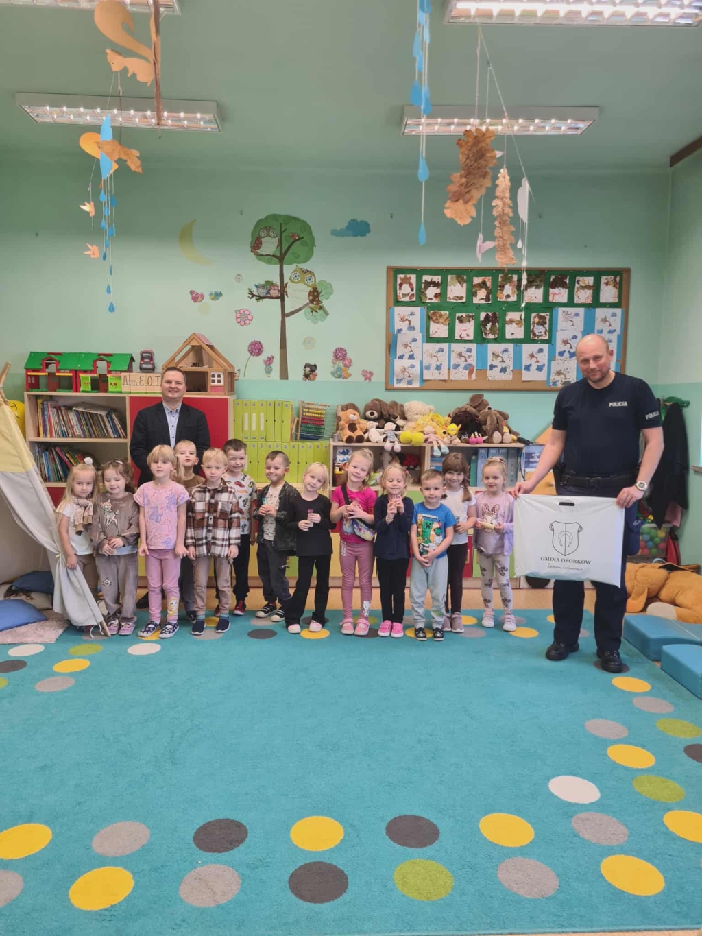 W dniu 13 listopada 2025 r. na zaproszenie pedagoga szkolnego gościliśmy przedstawiciela Komisariatu Policji w Ozorkowie – dzielnicowego – st. asp. Szczepana Derulskiego. Spotkania z uczniami odbyły się w trzech grupach: oddziały przedszkolne, klasy