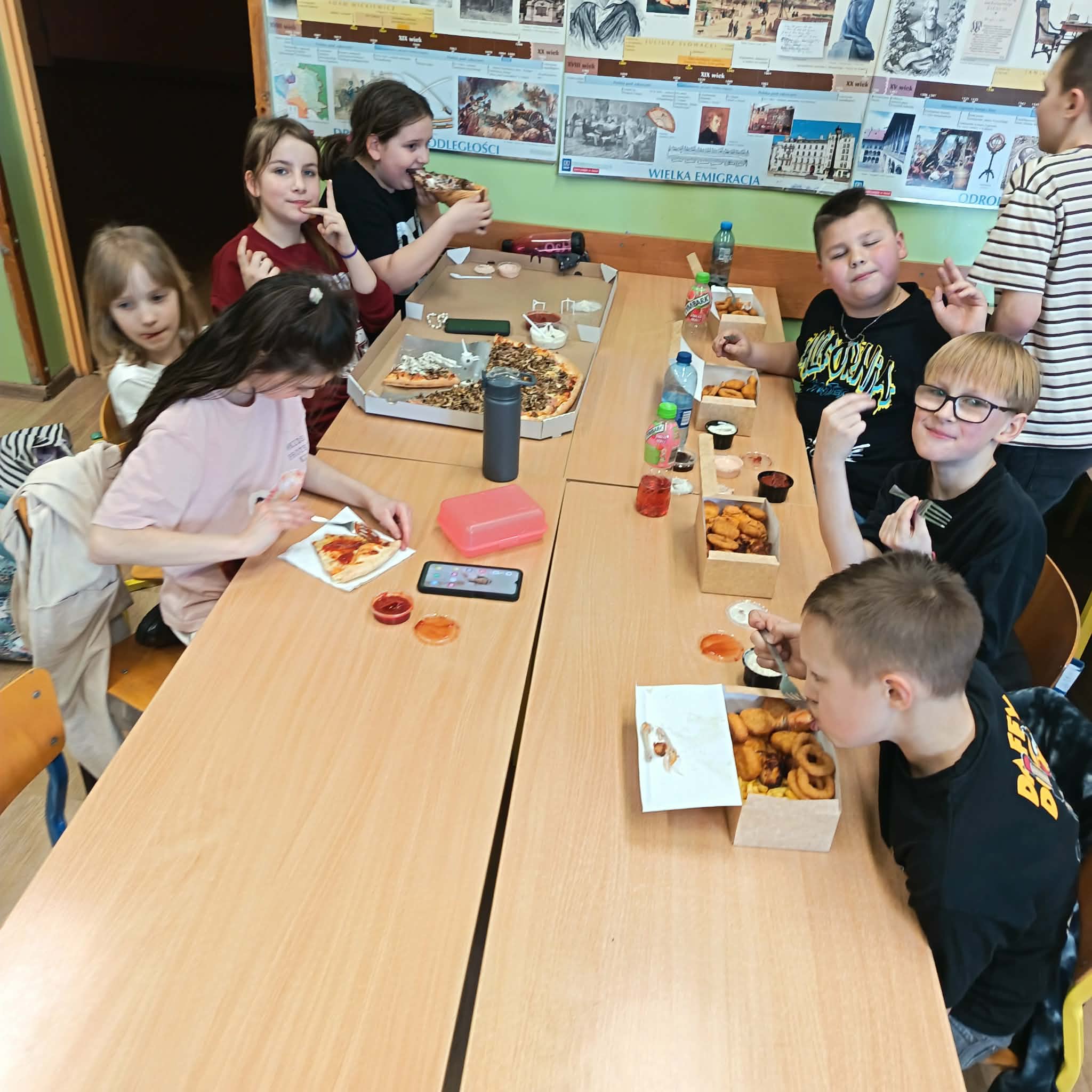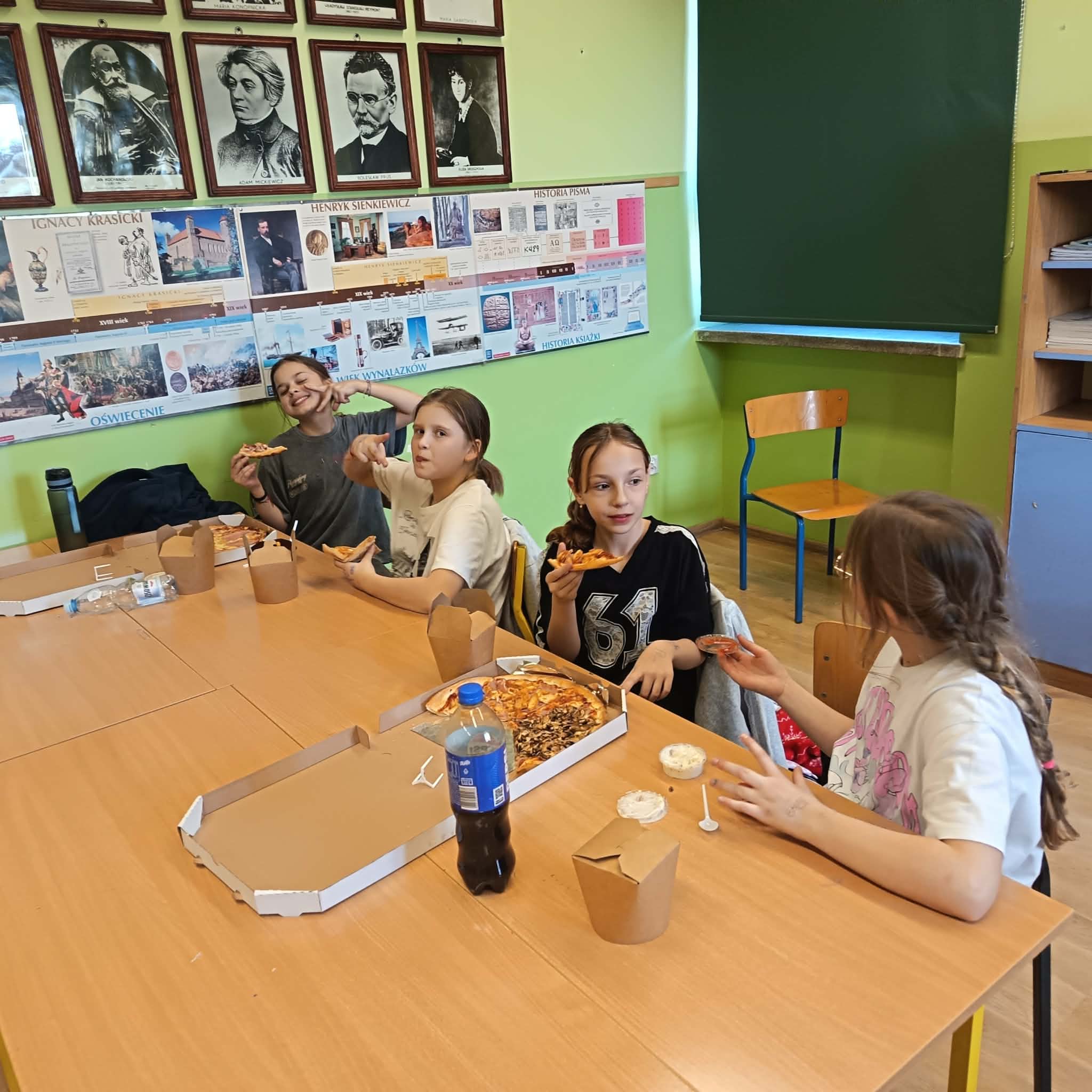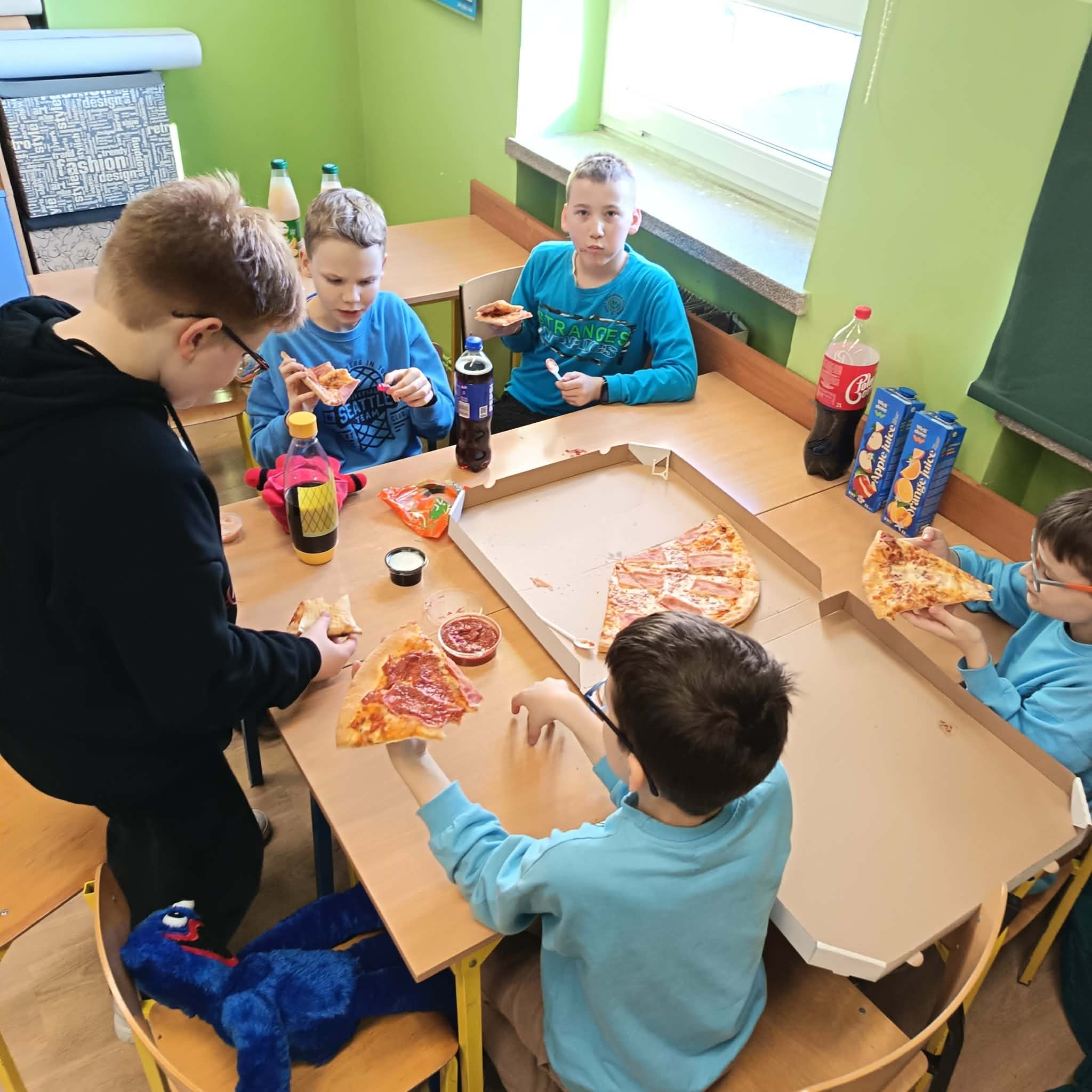 W piątkowe popołudnie (03.2026 r) uczniowie klasy czwartej wraz z wychowawcą spotkali się, aby wspólnie świętować Dzień Kobiet i Dzień Mężczyzn. Była to doskonała okazja do spędzenia czasu razem w miłej i radosnej atmosferze. Podczas spotkania uczniowie brali udział w różnych grach zespołowych, które dostarczyły wiele śmiechu i dobrej zabawy. Po wspólnych aktywnościach przyszedł czas na pyszną pizzę, która wszystkim bardzo smakowała. Nie zabrakło także serdecznych życzeń przygotowanych wspólnie przez uczniów. Był to bardzo udany dzień, który pozwolił klasie jeszcze bardziej się zintegrować i wzmocnić koleżeńskie relacje.