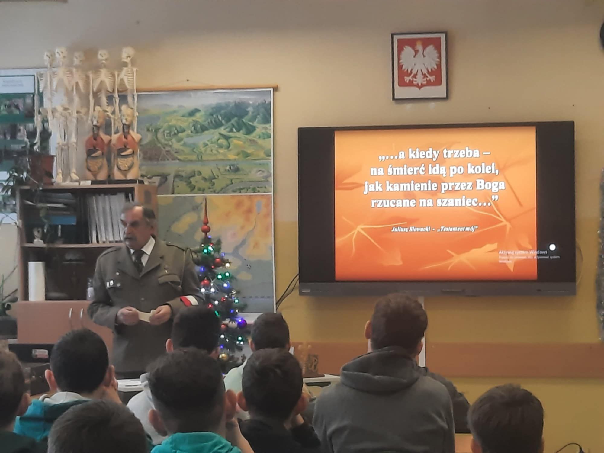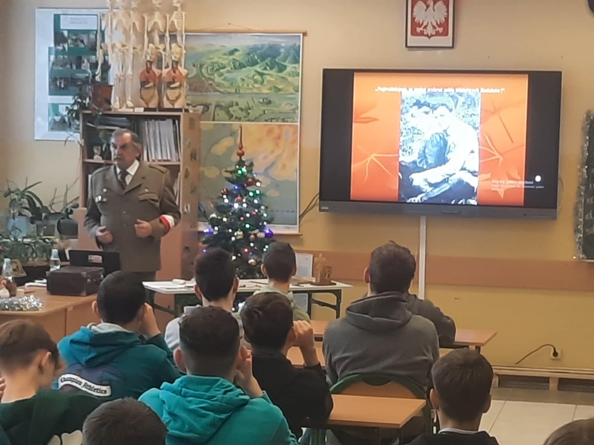 Krzysztof Jakubiec opowiedział naszym uczniom również wiele historii, których był osobiście świadkiem jako przyjaciel i opiekun „Matuli Polskich Harcerzy”, matki Janka Bytnara – Zdzisławy Bytnarowej. W ostatnich latach jej życia odwiedzał ją bowiem bardzo często ze swoimi uczniami. Co roku tuż przed uroczystością Wszystkich Świętych zabierał ich również na Cmentarz Powązkowski do Warszawy, aby uprzątać groby „Rudego”, „Alka”, „Zośki” i innych żołnierzy AK. Mamy nadzieję, że nasi uczniowie na długo zapamiętają patriotyczne przesłanie, płynące z jego opowieści o polskich bohaterach.