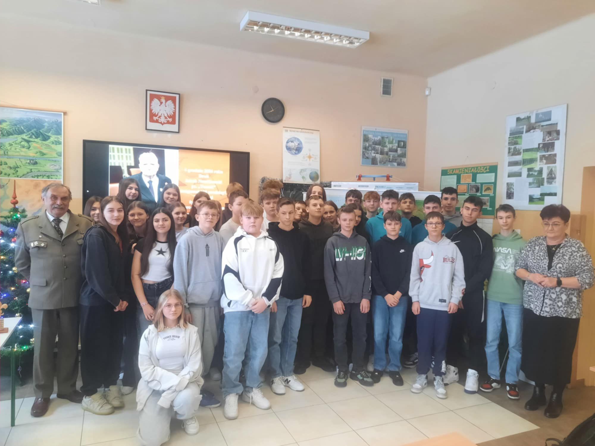 W środę 15 stycznia 2024 r. uczniowie klasy VII oraz VIII wysłuchali barwnej gawędy harcmistrza Krzysztof Jakubca poświęconej bohaterom książki Aleksandra Kamińskiego „Kamienie na szaniec”, jednej z najważniejszych pozycji literatury polskiej okresu wojennego. Nasz gość – harcmistrz, pedagog, gawędziarz, wiceprezes Oddziału Łódzkiego Stowarzyszenia Szarych Szeregów, twórca konkursu „Arsenał Pamięci” oraz zwycięzca plebiscytu Mistrz Mowy Polskiej Vox Populi 2009 od wielu lat popularyzuje wiedzę o historii harcerstwa, Szarych Szeregach i ich bohaterach. Podczas dwugodzinnego spotkania przybliżył naszym uczniom losy grupy młodzieży z 23 Warszawskiej Drużyny Harcerskiej „Pomarańczarnia”, wśród których znajdowali się m.in. Maciej Aleksy Dawidowski „Alek”, Tadeusz Zawadzki „Zośka” i Jan Bytnar „Rudy”. Po zajęciu stolicy przez Niemców w 1939 roku, trzej główni bohaterowie próbowali odnaleźć się w nowej rzeczywistości. Brali udział w akcjach tzw. małego sabotażu, m.in. nalepiali karteczki na obwieszczeniu gubernatora Hansa Franka o utworzeniu Generalnego Gubernatorstwa czy organizowali spotkania dyskusyjne. W marcu 1941 roku wstąpili do Szarych Szeregów Chorągwi Warszawskiej i rozpoczęli działalność w Organizacji Małego Sabotażu „Wawer”. W listopadzie 1942 zostali członkami Grup Szturmowych. Po aresztowaniu Janka Bytnara „Rudego” przez Gestapo, Tadeusz Zawadzki „Zośka” zorganizował akcję odbicia przyjaciela, przeprowadzoną 26 marca 1943 roku. „Rudego” udało się uwolnić, jednak wskutek obrażeń odniesionych podczas torturowania przez funkcjonariuszy Gestapo zmarł 30 marca 1943 roku. Tego samego dnia zmarł śmiertelnie ranny podczas akcji Maciej Dawidowski „Alek”. Tadeusz Zawadzki „Zośka” zginął podczas akcji w Sieczychach 20 sierpnia 1943 roku.