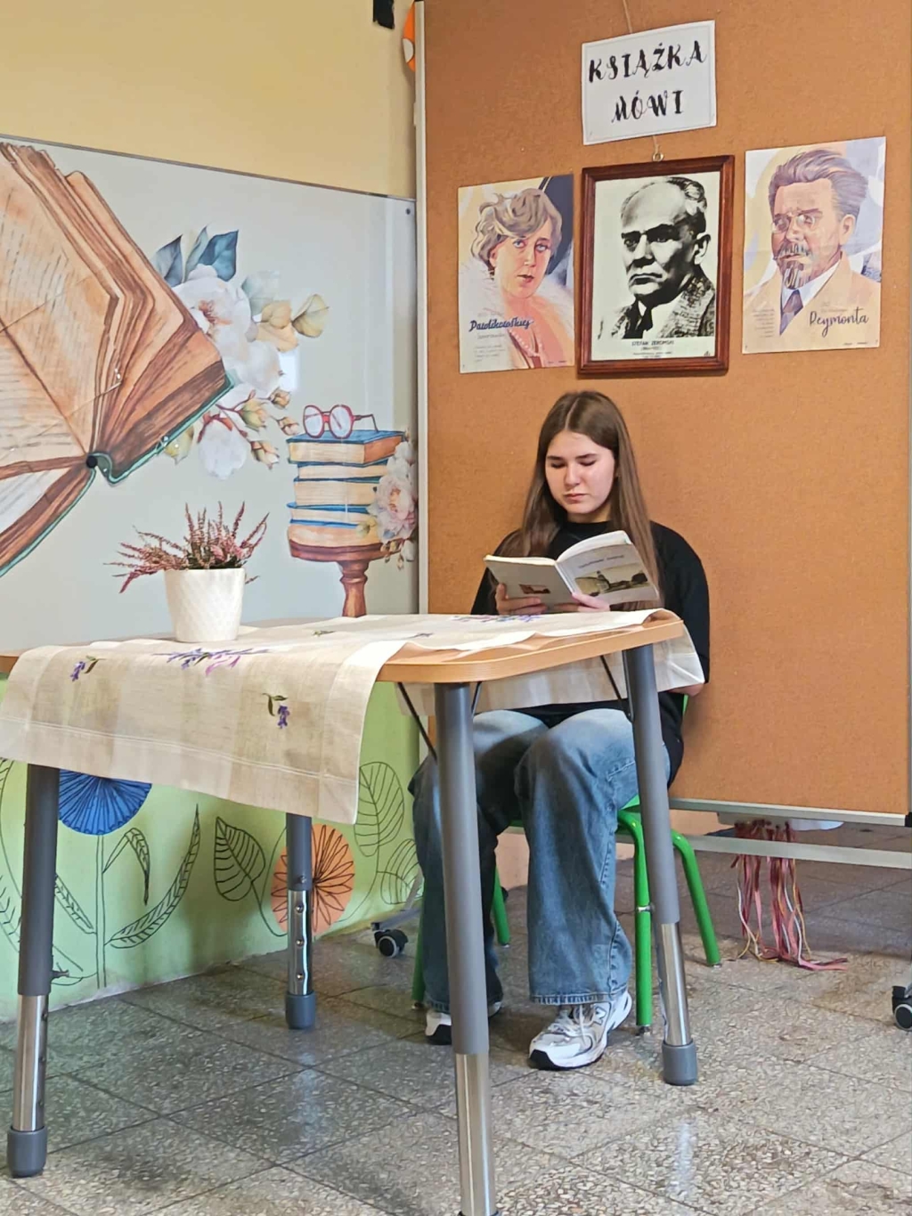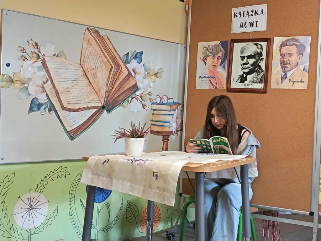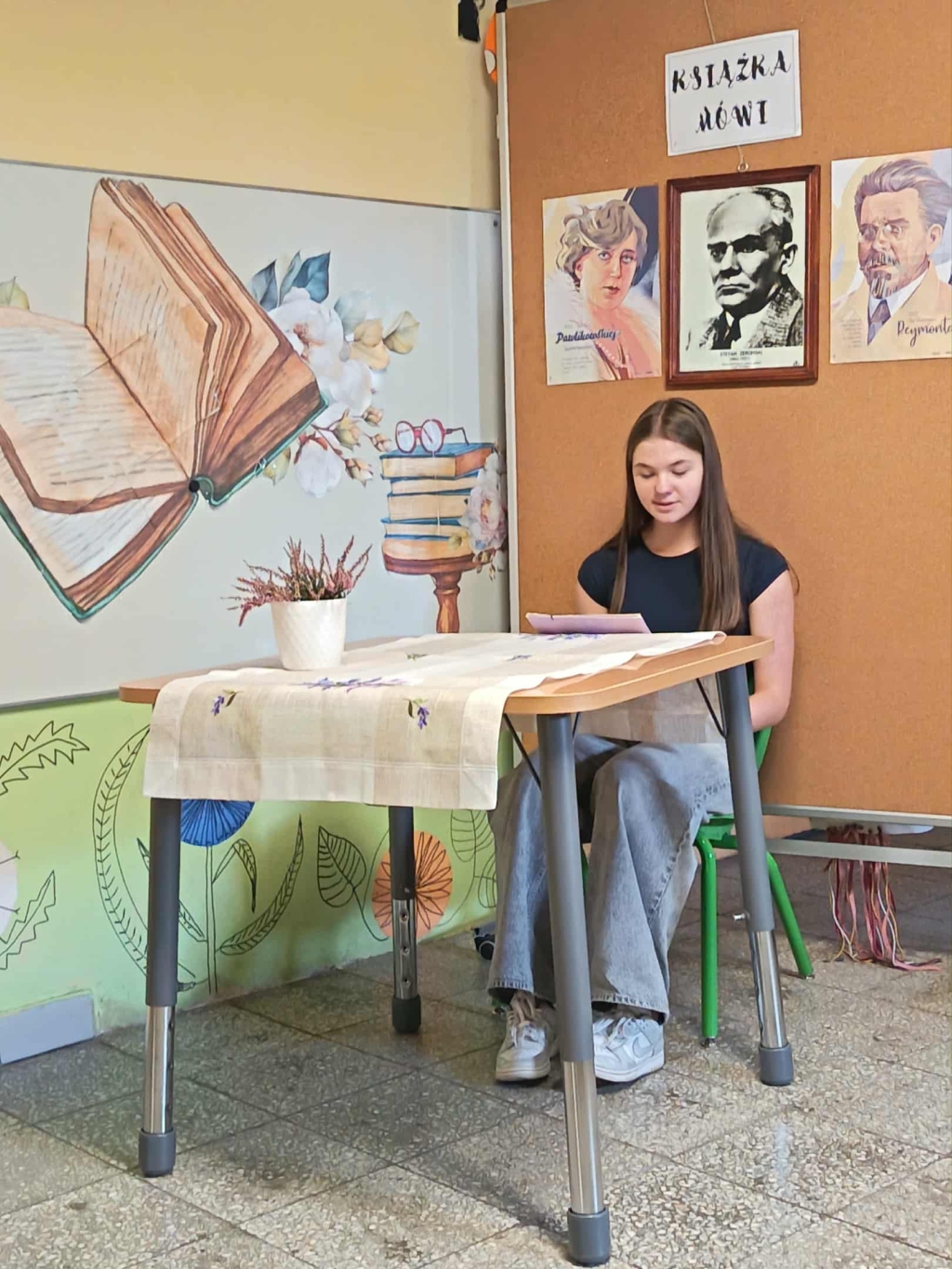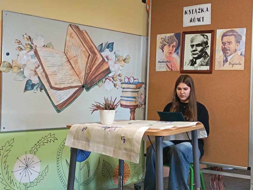 W naszej szkole 9 października 2025 roku odbyły się eliminacje szkolne Konkursu pięknego czytania „Książka mówi”, skierowanego do uczniów klas VII–VIII szkół podstawowych oraz szkół ponadpodstawowych z terenu województwa łódzkiego.W skład jury weszli: pan dyrektor Rafał Nowak oraz panie Alicja Goślińska i Karolina Ziemlicka. Komisja miała naprawdę trudne zadanie, ponieważ poziom uczestników był wyjątkowo wysoki – każda z uczennic zaprezentowała wspaniałe umiejętności interpretacji i kultury słowa. Z ogromną przyjemnością informujemy, że do etapu rejonowego zakwalifikowały się: Maria Jagodzińska i Aleksandra Wójcik. Gratulujemy wszystkim uczestniczkom oraz trzymamy kciuki za nasze reprezentantki w dalszych etapach konkursu!