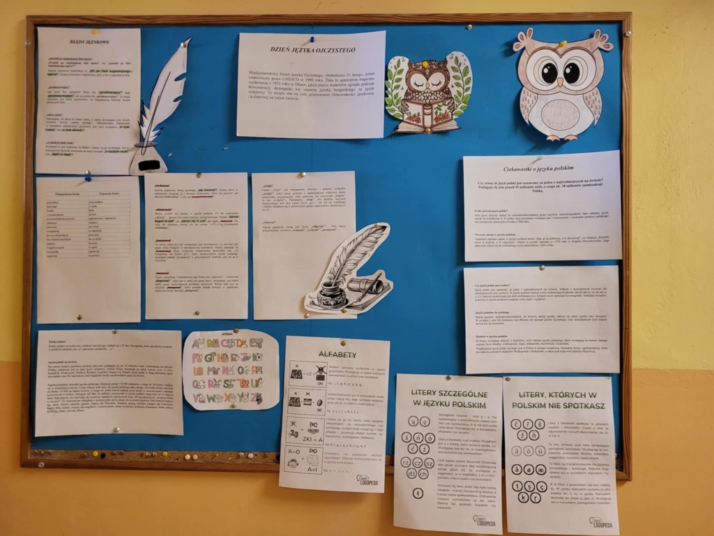 W czwartek 6 marca 2025 r. z uwagi na wypadający w tym roku w ferie Międzynarodowy Dzień Języka Ojczystego (21 lutego) obchodziliśmy go w naszej szkole w połączeniu z Europejskim Dniem Logopedy. Uczniowie mogli zaprezentować swoje umiejętności w rozwiązywaniu rebusów, łamigłówek, zagadek ortograficznych. Ponadto mogli sprawdzić znajomość wybranych związków frazeologicznych. Poza tym ciekawym doświadczeniem było odczytywanie trudnych do wypowiedzenia krótkich tekstów. Dodatkowo uczniowie klasy VI odwiedzili naszych przedszkolaków i przeczytali im wybrane bajki i wiersze. Przygotowali również najważniejsze informacje i ciekawostki o języku polskim oraz wykaz najczęściej popełnianych błędów. Uczniowie zostali nagrodzeni słodkim upominkiem.