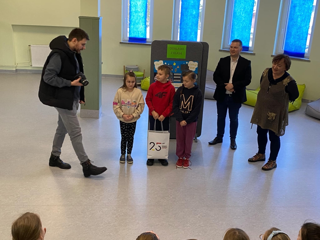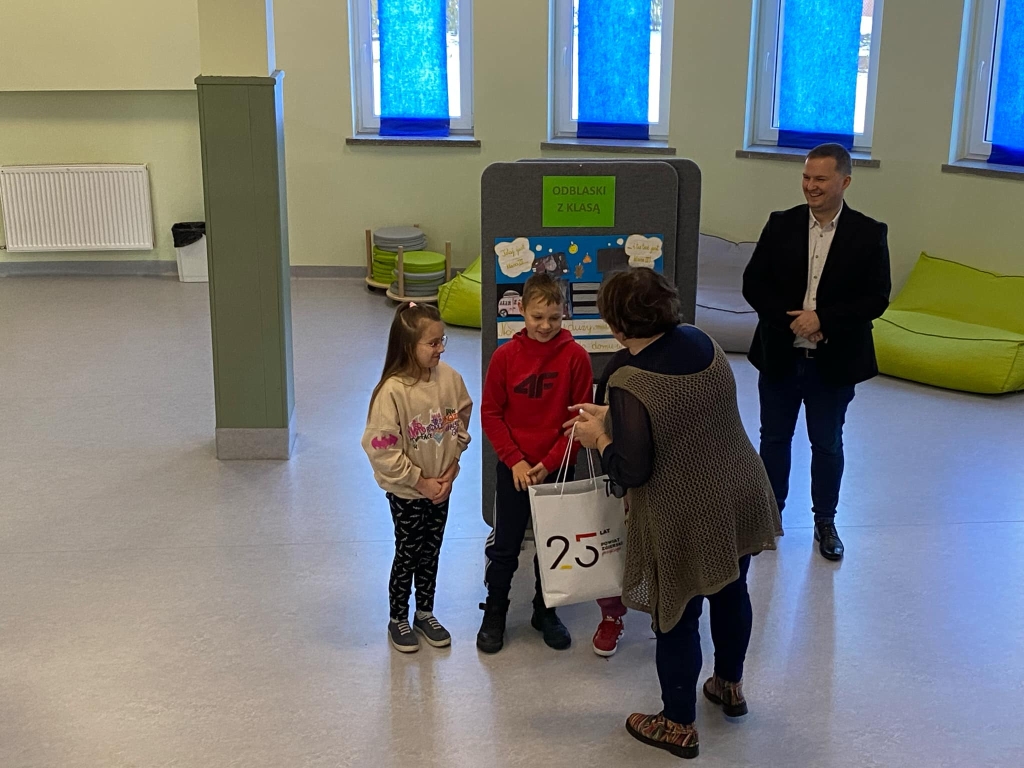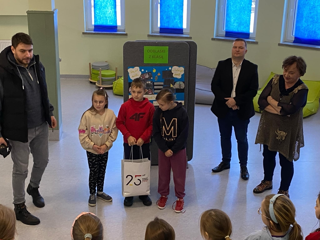 13 stycznia b.r. naszą szkołę odwiedzili Starosta Zgierski Pani Iwona Dąbek wraz z organizatorami Powiatowego Konkursu „ODBLASKI Z KLASĄ – ŚWIEĆ PRZYKŁADEM”. Wzięli w nim udział uczniowie klas I-III pod opieką Pani Alicji Goślińskiej i Pani Katarzyny Sobczak.