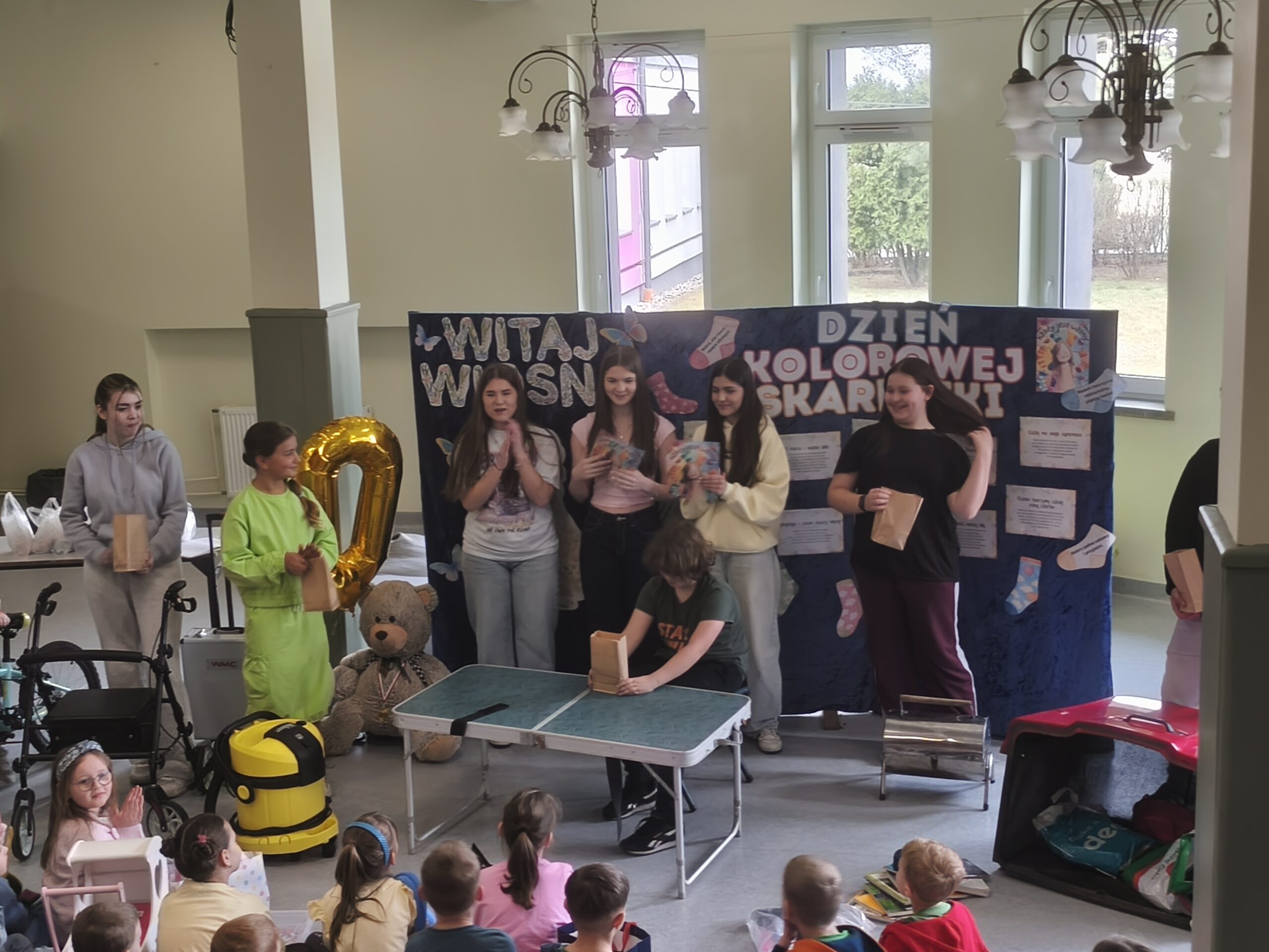 Drugim ważnym elementem obchodów był Dzień Kolorowej Skarpetki, który miał na celu promowanie akceptacji i solidarności z osobami z zespołem Downa. Uczniowie i nauczyciele założyli kolorowe, niepasujące do siebie skarpetki jako symbol różnorodności.