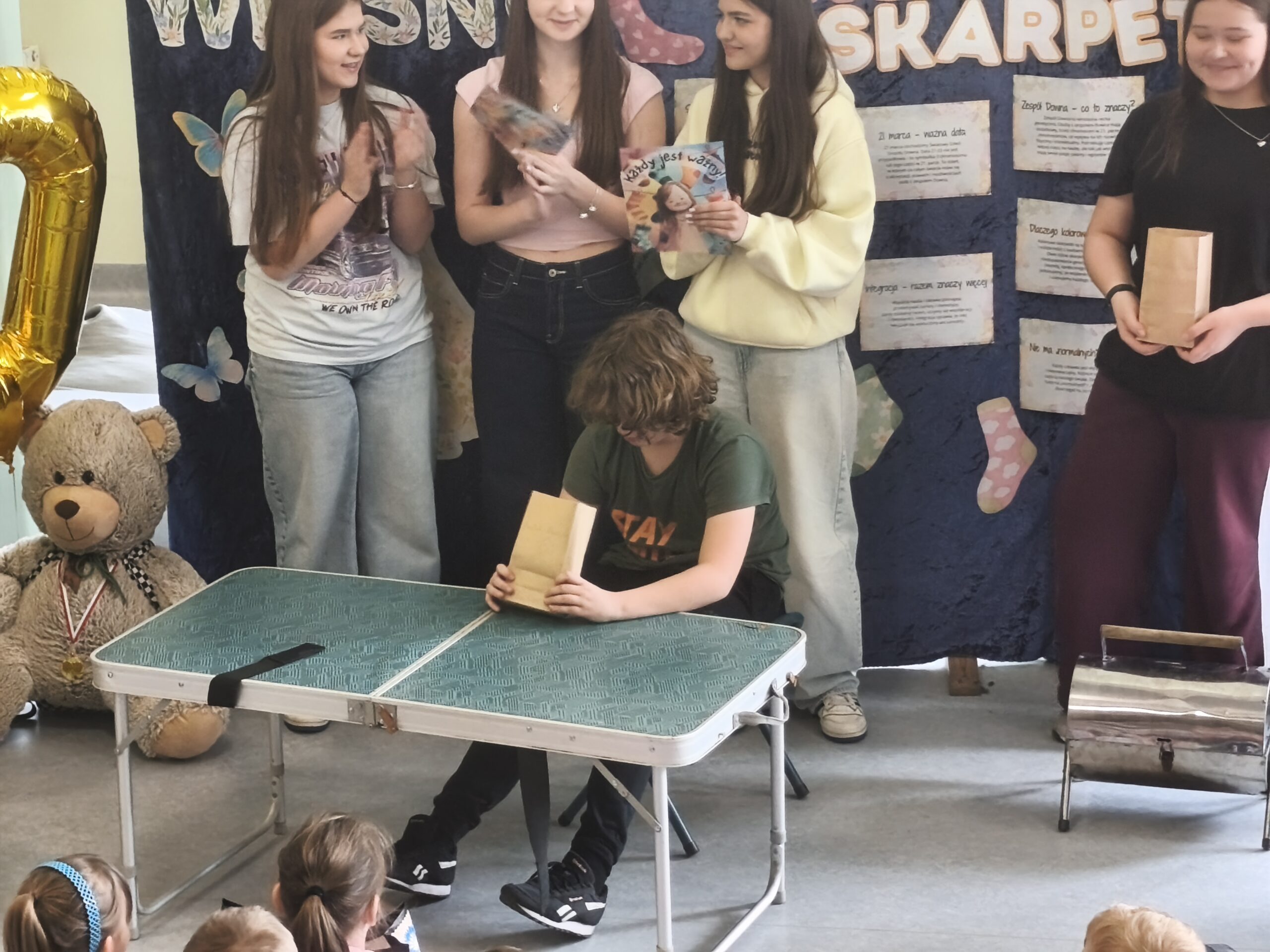 Jedną z największych atrakcji był „Dzień Bez Plecaka”. Uczniowie wykazali się ogromną pomysłowością, przynosząc swoje książki i przybory szkolne w nietypowych „zastępczych” plecakach. Na szkolnych korytarzach można było zobaczyć kosze na pranie, walizki, wózki, a nawet rower i grill. Kreatywność uczestników nie miała granic i wywoływała wiele śmiechu oraz pozytywnych emocji.