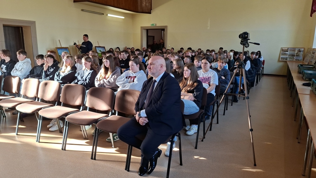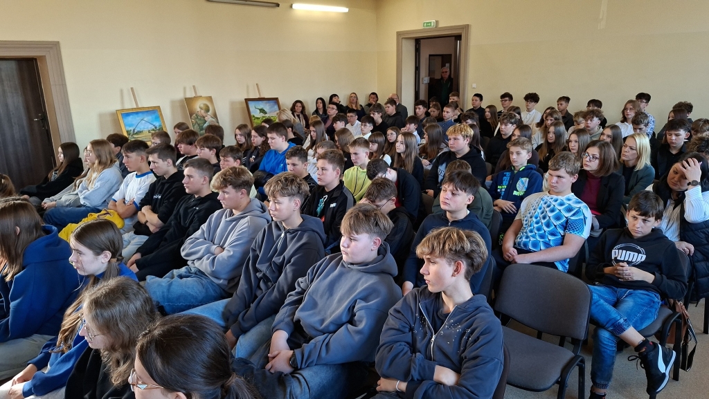 4 listopada 2025 r. w Gminnym Ośrodku Kultury w Leśmierzu uczniowie klasy siódmej i ósmej naszej szkoły wzięli udział w spotkaniu „Weterani są wśród nas” zorganizowanym przez Fundację Maszerujemy pod honorowym patronatem Wójta Gminy Ozorków. Dzięki ten niezwykłej inicjatywie, uczniowie mieli możliwość spotkania się z prawdziwymi świadkami historii, uczestnikami często przełomowych wydarzeń XXI wieku. Zobaczyli również, że patriotyzm to nie tylko wielkie słowa, ale przede wszystkim wielkie czyny i ogromna odpowiedzialność. Podczas spotkania swoimi wspomnieniami z misji poza granicami kraju podzielili się: